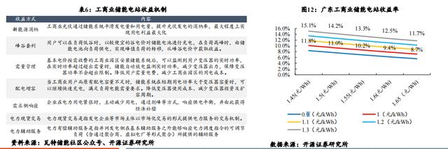 以廣東為代表的工商業較為發達的地區工商業儲能電站已經具備了一定經濟性。在廣東地區,在僅考慮峰谷價差套利單一受益方式的情況下, 工商業儲能電站通過每天兩充兩放(一次谷充尖放、一次平充峰放),初始投資成本為1.6元/Wh,最大峰谷價差在1.1元/度的情況下,其資 本金收益率可達9.4%,投資回收期在8年之內。在鋰電成本持續下降的情況下,改投資回收期有望進一步縮短。