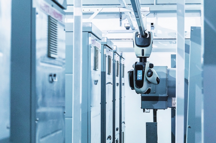 在深圳110千伏投控變電站,吊軌機器人對GIS設備進行紅外測溫。黃志偉 攝