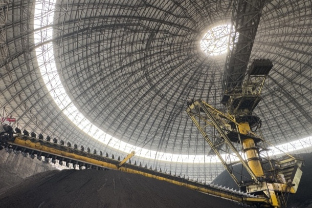 圖為國能(泉州)熱電有限公司無人值守圓形堆取料機正在卸煤