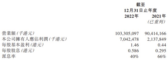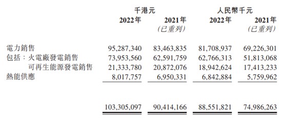從基本面上來看,華潤電力是業內少有的,在2022年內實現收入和利潤均正向增長的企業。年內,公司實現營業收入1033.05億港元,同比增加14.3%,主要因火電不含稅平均上網電價同比上升20.2%,附屬電廠售電量同比增加4.1%;及附屬電廠不含稅平均售熱單價/售熱量同比增加13.8%/6.4%所驅動。其中,2022下半年,其收入同比增長11.1%,環比增長4.9%至529億港元。
