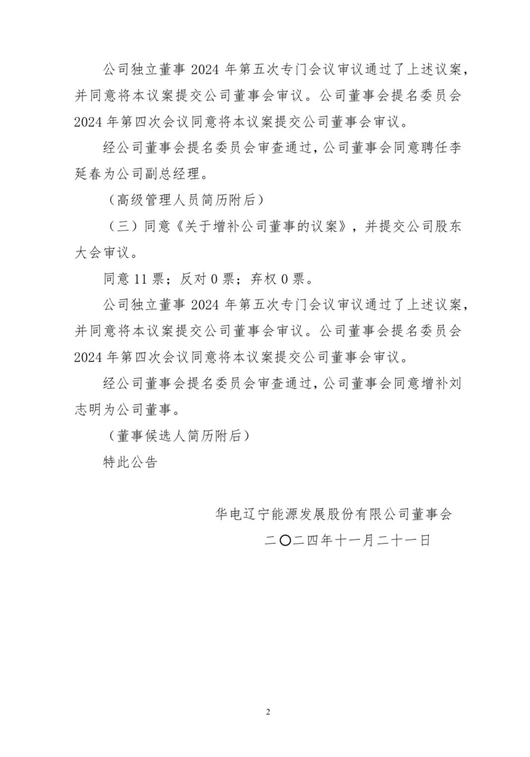 李延春任華電遼寧能源發(fā)展股份有限公司(以下簡稱“華電遼能”)副總經(jīng)理。劉志明為華電遼能董事。