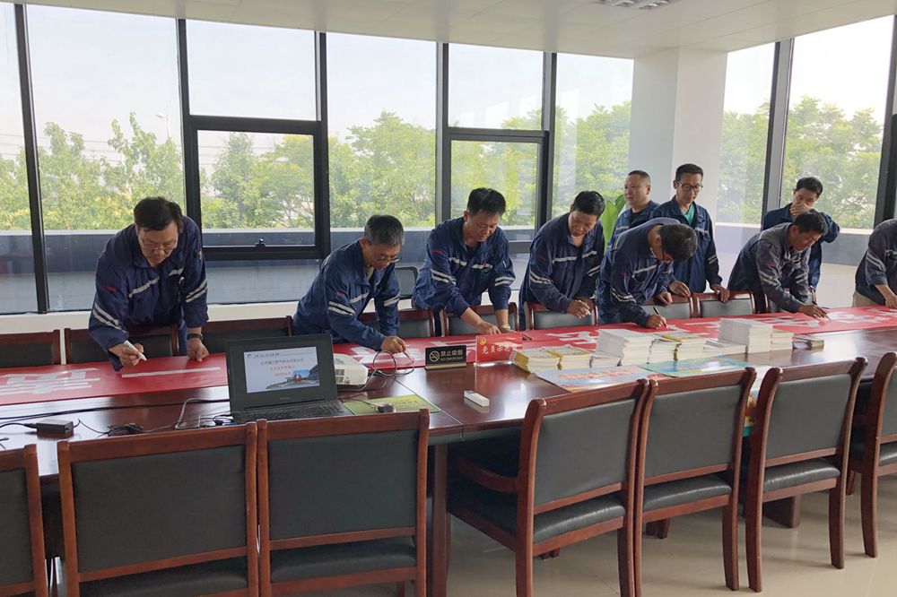 該公司鎮江項目部與業主方安監部門聯合開展安全生產倡議簽名活動,發放安全生產宣傳手冊,廣泛宣傳安全知識,持續強化紅線意識。當涂項目部結合“安全生產月”活動主題進行安全知識宣講,深化普及員工安全生產、防災減災、應急避險等知識常識,營造出濃厚的安全生產氛圍。