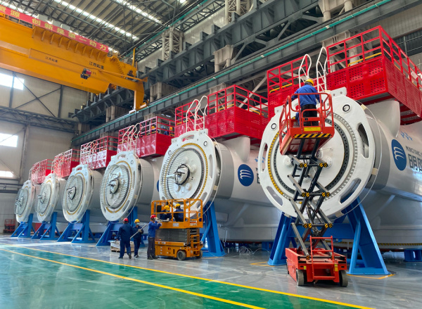 明陽智能海上風電產業園內設備高效運轉、操作者各司其職 陳坂升 攝