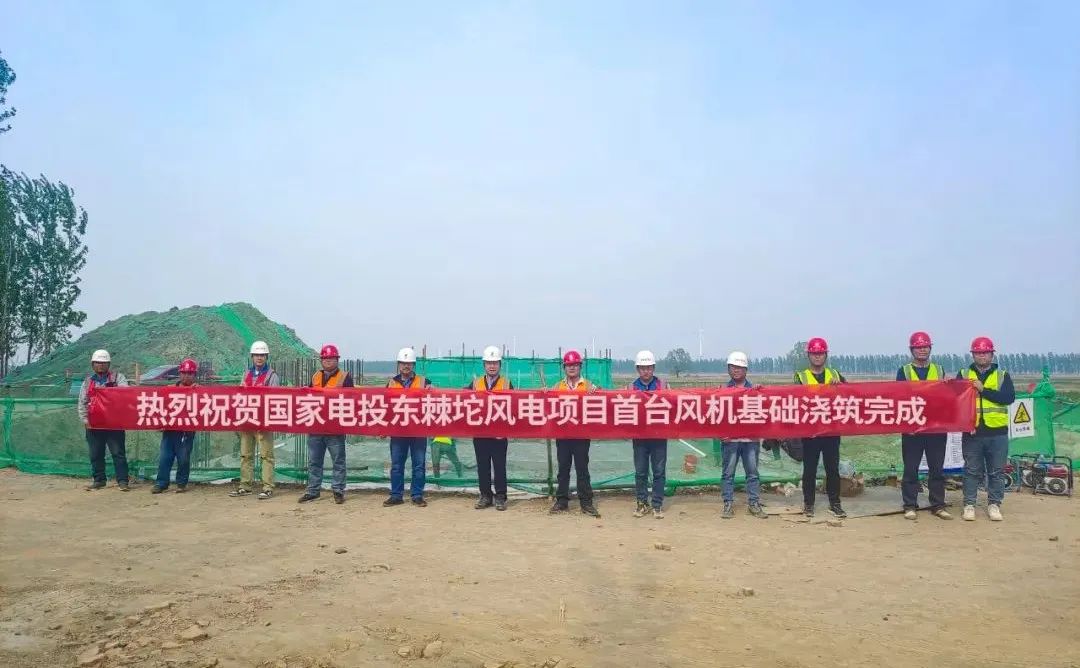天津?qū)幒訓(xùn)|棘坨50兆瓦風電項目首臺風機基礎(chǔ)澆筑順利完成