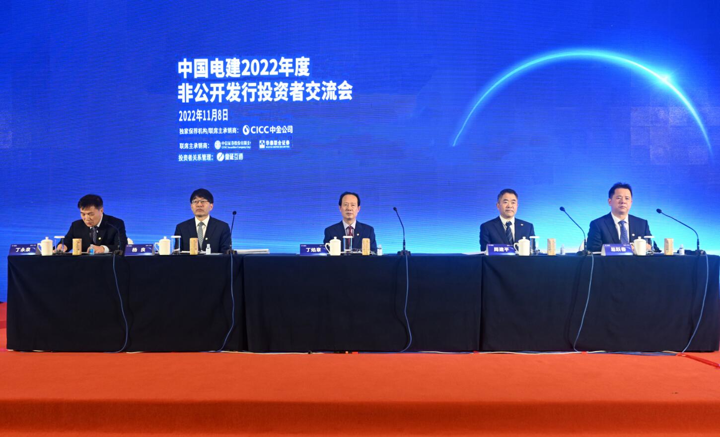 本網訊 11月8日,中國電建在京召開2022年度非公開發行投資者見面會。公司黨委書記、董事長丁焰章出席會議并作主題演講,對本次非公開發行方案進行了系統推介。公司總會計師楊良參與投資者交流。