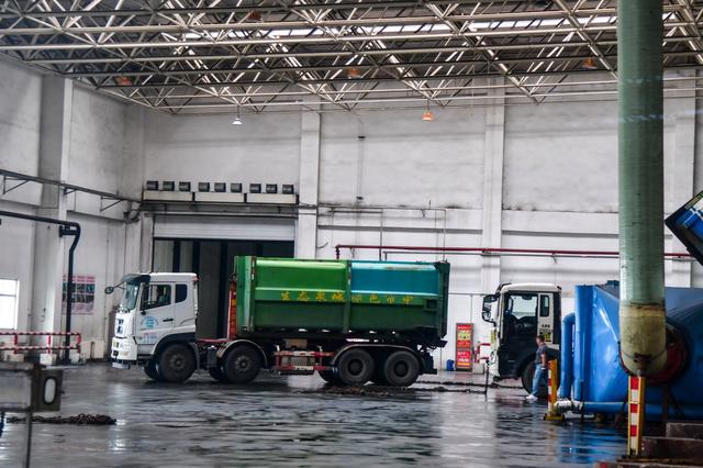 9月19日,在山東啟迪濟能環保科技有限公司,運輸車在負壓車間內卸載生活垃圾。