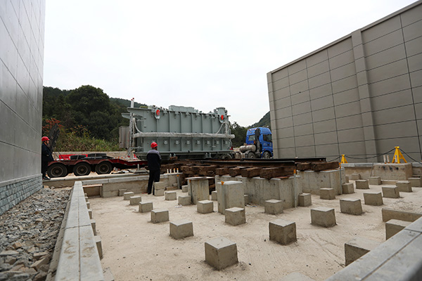 為保證變壓器順利運(yùn)輸、安全就位。國(guó)網(wǎng)寧海縣供電公司前期做了大量的準(zhǔn)備工作,與主變廠家、運(yùn)輸公司、設(shè)計(jì)、施工單位人員多次溝通協(xié)調(diào),帶領(lǐng)專(zhuān)業(yè)技術(shù)人員多次深入現(xiàn)場(chǎng)踏勘進(jìn)站便道地形、路況,組織研討運(yùn)輸和安裝方案,并對(duì)主變安裝施工人員進(jìn)行了全面的安全、技術(shù)交底,對(duì)施工流程、人員分工、施工關(guān)鍵點(diǎn)控制等進(jìn)行具體安排。由于本次主變來(lái)自山東魯能泰山電力設(shè)備有限公司,距離浙江寧海長(zhǎng)達(dá)1015公里,承載著七十二噸的龐然大物,全程運(yùn)輸六十五個(gè)小時(shí),在克服沿線(xiàn)空障多、橋梁多、路況復(fù)雜等困難下,終于抵達(dá)了目的地。