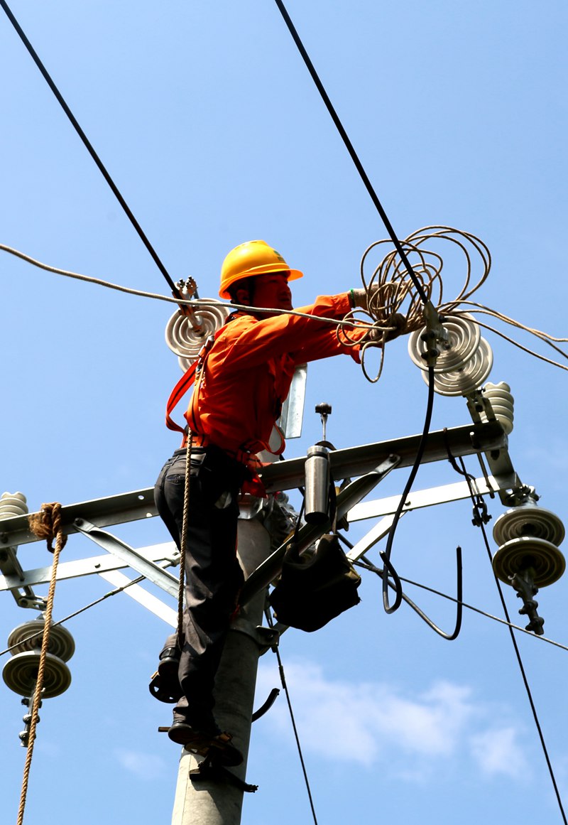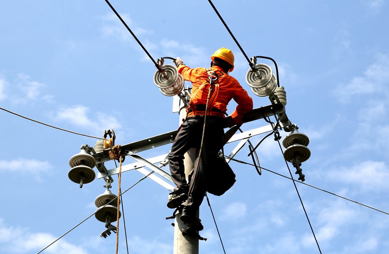 四川通江供電公司高溫天氣電力員工作業忙