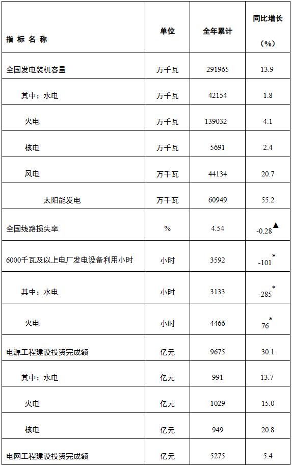 1.全國發電裝機容量及其中的分項指截至統計月的累計裝機容量。