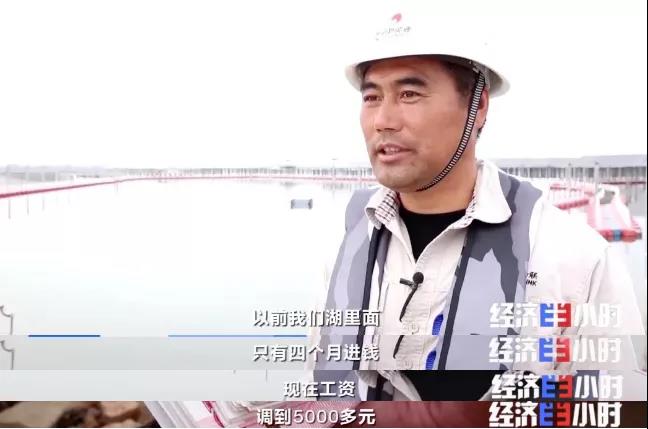 這天,周金飛他們整整賣了十車魚,拿到了1000元獎金。他現(xiàn)在不僅拿工資、領(lǐng)獎金,還有五險一金的待遇保障。工資、獎金、湖面租金,一年收入將近十萬元。