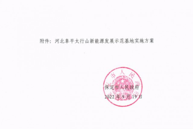 關(guān)于同意開(kāi)展阜平太行山新能源發(fā)展示范基地建設(shè)的復(fù)函