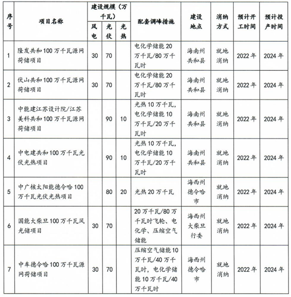 2022年8月24日,青海省能源局在“關于加強海南州清潔能源產業建設的建議”——省十三屆人民代表大會第七次會議第224014號建議答復的函上表示,省第二批大型風電光伏基地取得重大進展,7個項目、合計700萬千瓦納入第二批以沙漠、戈壁、荒漠地區為重點的大型風電光伏基地建設項目清單,其中隆發共和100萬千瓦源網荷儲項目、中能建江蘇設計院/江蘇美科共和100萬千瓦源網荷儲項目、伏山共和100萬千瓦源網荷儲項目、中電建共和100萬千瓦光伏光熱項目共400萬落地海南州共和縣。