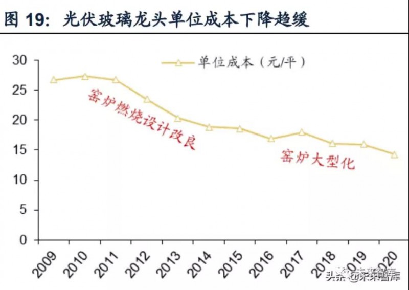 光伏玻璃受益雙玻滲透提升,背部應用打開增量空間。根據CPIA協會對賽伍技術董事長的專訪內容,透明背板因為能夠實現組件的輕量化,預計將占到雙面組件20%市場份額,同時根據CPIA預測,2025年雙面組件市場份額有望達到60%,由此我們預計2025年雙面單玻(透明背板)組件占比為12%,不考慮雙面均為透明背板的組件,則雙面雙玻組件滲透率為48%,單面單玻組件占比為40%,對應光伏玻璃需求將在2025年接近28億平,2020-2025年CAGR達22%。