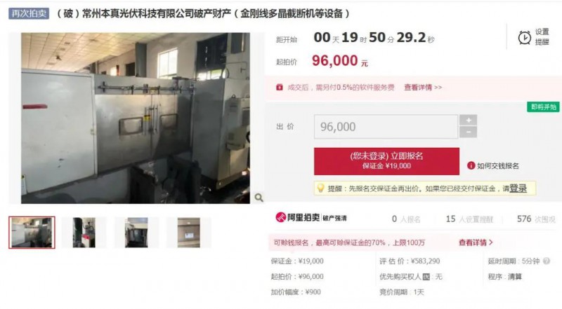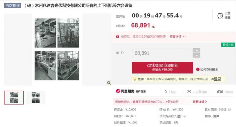 近日,一批土地使用權、光伏電站機器設備及金剛線多晶截斷機、上下料機、太陽能晶片計數儀等光伏設備即將在阿里司法拍賣平臺進行拍賣。