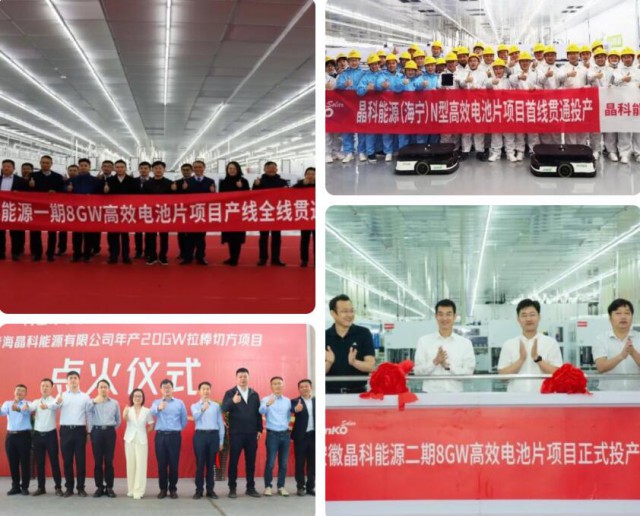 6月28日,晶科能源“尖山二期11GW高效電池及15GW組件智能生產線項目”作為浙江省重點項目參與集中開工儀式,進一步加大TOPCon產能投入,電池量產平均效率目標為25%以上。