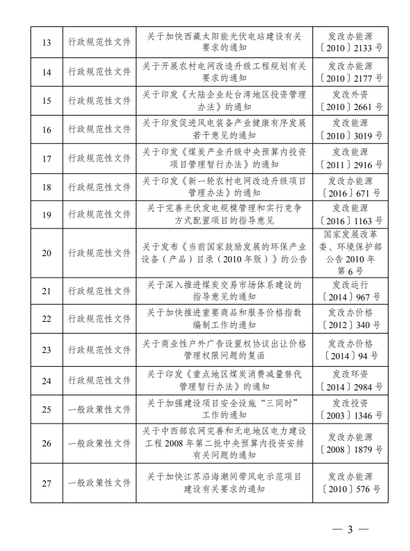 經(jīng)過(guò)清理,決定對(duì)47件規(guī)章、行政規(guī)范性和一般政策性文件予以廢止,其中包括《關(guān)于完善光伏發(fā)電規(guī)模管理和實(shí)行競(jìng)爭(zhēng)方式配置項(xiàng)目的指導(dǎo)意見(jiàn)》等多項(xiàng)跟光伏、風(fēng)電能源領(lǐng)域有關(guān)文件。