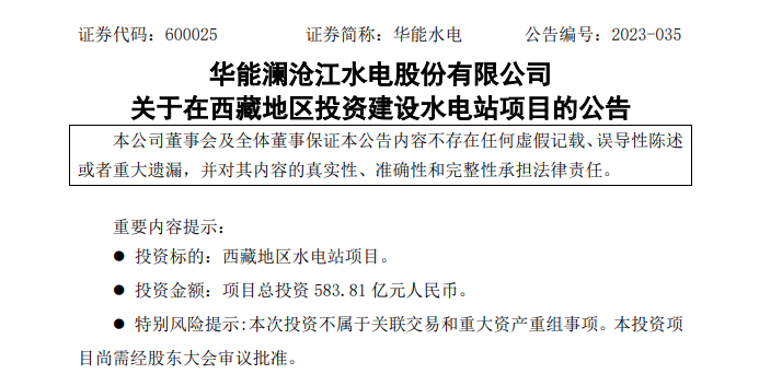 就擬在西藏地區投資建設的水電項目,華能水電強調,該項目是公司建設瀾滄江西藏段清潔能源基地的重要樞紐,在發揮瀾滄江流域梯級聯合調度優勢,提升梯級水能利用率及綜合發電效益方面作用顯著。