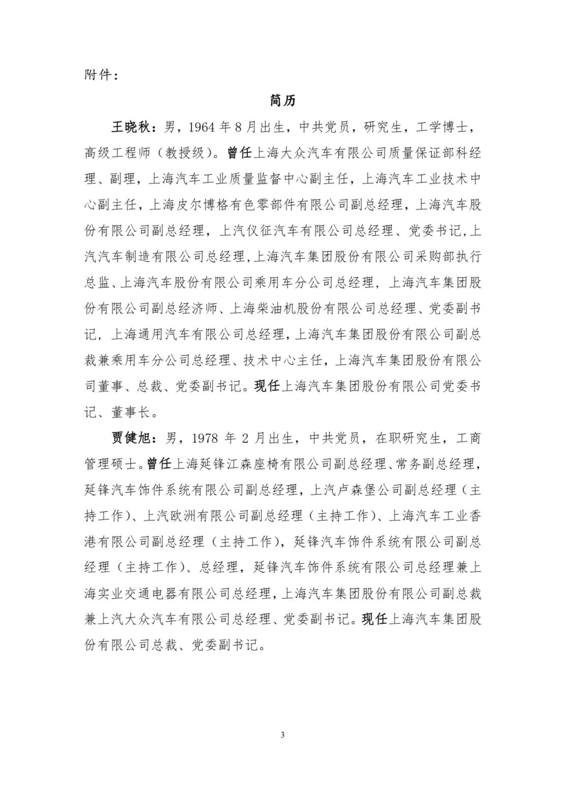 上海汽車集團(tuán)股份有限公司(以下簡稱“上汽集團(tuán)”)董事長陳虹因到齡退休辭去公司第八屆董事會董事長、董事及董事會戰(zhàn)略與ESG可持續(xù)發(fā)展委員會主任委員、委員職務(wù);王曉秋任第八屆董事會董事長。