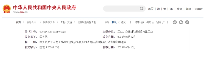 3月13日,國務院印發《推動大規模設備更新和消費品以舊換新行動方案》(以下簡稱《行動方案》)。