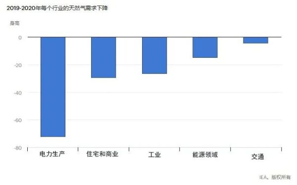 能源行業(yè)本身占全球天然氣需求下降的10%左右,同比下降4%,這反映了全球供應(yīng)的總體下降。《報(bào)告》稱,發(fā)電消耗同比下降約5%,占全球需求下降的一半;全球住宅和商業(yè)部門(mén)的天然氣使用量下降了近4%(主要是在上述成熟市場(chǎng)中),占總消費(fèi)損失的20%;工業(yè)部門(mén)也占全球減少量的近20%,到2020年同比下降約4%。
