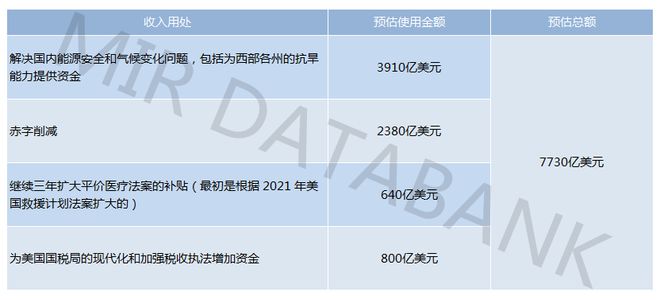 IRA法案的實施是政治家們的游戲,但透過政治博弈的波譎云詭,人們更關心的是法案本身到底在傳達什么信息。簡單來說,IRA法案旨在通過減少赤字、降低處方藥價格、投資國內能源生產以及促進清潔能源產業來遏制通膨。以上的想法是偉大的,但是美國目前國家債務高筑,聯邦政府連年擴大赤字,美國的國家總債務限額屢屢被觸及,需要提高債務上限。這項宏大的新能源投資刺激法案的錢從哪來?又被具體分配到哪些領域? 這些問題由MIR睿工業通過對法案原文的解讀總結出下列圖表: