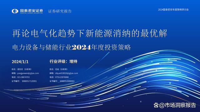 《電力設備與儲能行業2024年度投資策略:再論電氣化趨勢下新能源消納的最優解》